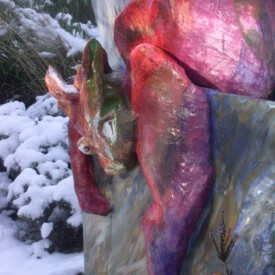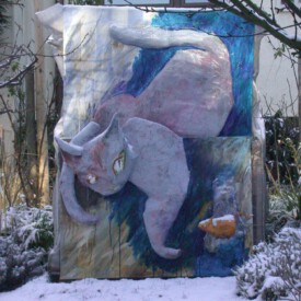 Der Aufbau der Plastik besteht aus Draht und Gips auf Leinwand, bemalt mit Acrylfarbe. Über die Jahre ist das Gebilde immer weiter bearbeitet und die Verwandlungen in Fotos festgehalten worden.